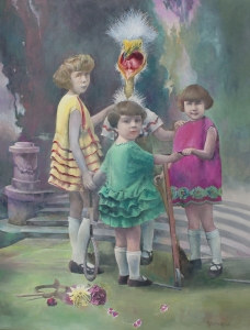 Born in Twickenham, England in 1935, Bucknall's early interest in art led him at the age of eighteen to India and Santiniketan, the Ashram of Rabindranath Tagore, then to Chelsea Art School, London, the University of Texas (BFA), and the University of Washington (MFA). Upon this rolling stone foundation, Bucknall’s absurdist Surrealism muddles Old Masters with tid-bits of cartoons, films, home photography and many other fascinations to create his anthropomorphic creatures. Bucknall feels that our observation of animals, as with art, is from the outside. In them we see predator devour prey, lovers join with unembarrassed abandon; we see birth, nurturing, the feathering of nests, death—all at a remove from ourselves yet mirroring our own deepest libidinous instincts, hopes and fears. Human-animal imagery has been a constant in art, folklore, religion, daydreams, and masquerade. It takes us quickly and easily to what is deep and difficult in ourselves. Bucknall aims directly at this sweet spot, a concoction of visual imagery that sums up common experience—love, fear, gawkiness, triumphalism, self-recognition. In this he reawakens a childlike sense of surprise and discovery, and put simply, calls us to wonder.