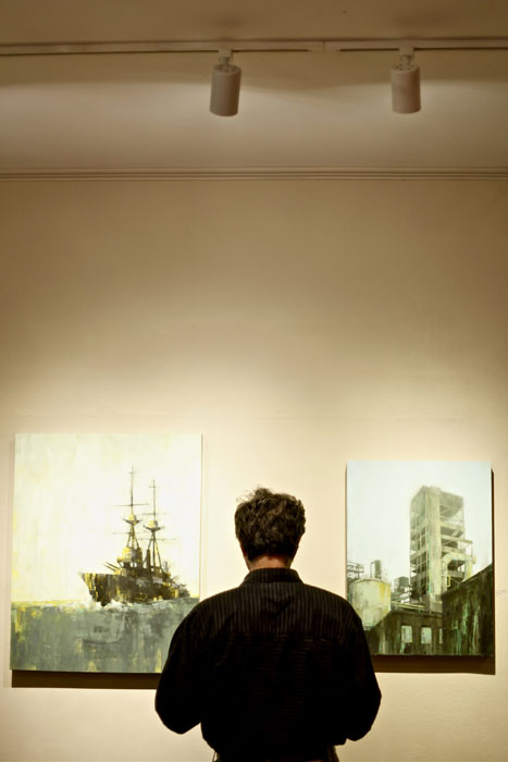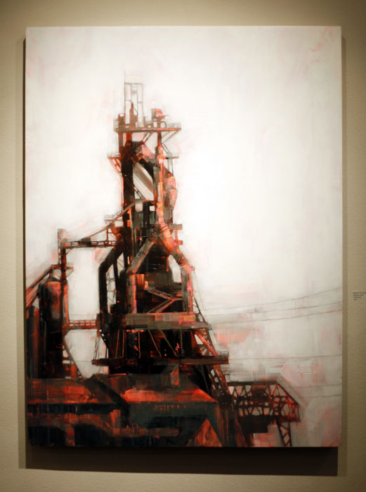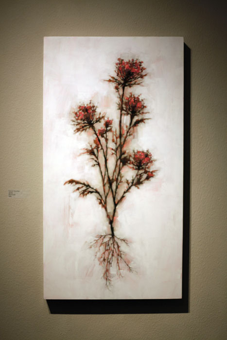 Oh, the way Angie paints. Whatever the subject matter, the result is always graceful and alluring. She has the ability to capture beauty and strength in solitary ships and isolated factories. Her "floral" pieces take on the same characteristics, no longer ornamentation but root and stem strong in their singular existence. This show is a powerful quiet. Pull up a chair.
