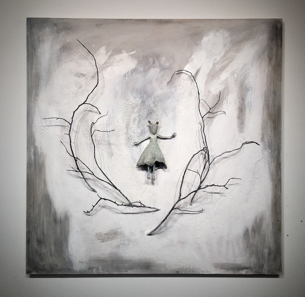 In my birds you see where the bird is shape shifting and he is stuck between the two worlds trying to choose, the world of man or the world of the spirit. He has the hands and eyes of mankind but still in bird form.” This is where I must confess I too have a foot stuck in two worlds trying to decide which one to live in.