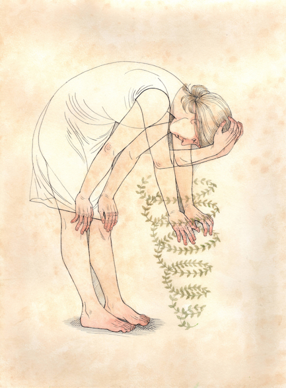 mixed media. watercolor, colored pencil, graphite, pen and ink, 16 x 12 inches unframed